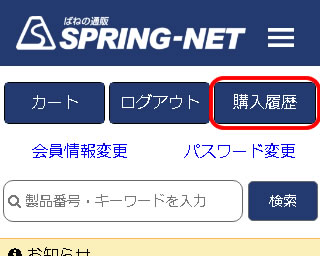 スプリングネットでは会員のお客様のご購入履歴をご覧いただくことができます。一度注文いただいた製品の再発注は、ご購入履歴から行えます。